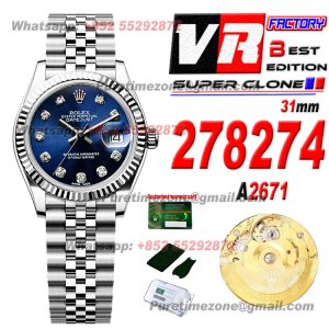 Datejust 278274 Automatic Womens Watch Super Clone VRF 31 Blue Diamonds Dial Jubilee Bracelet Ladies A2671 $530.00 $450.00