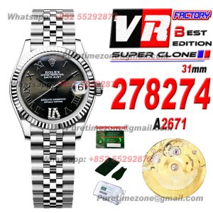 Datejust 278274 Automatic Womens Watch Super Clone VRF 31 Gray Roman VI Diamonds Dial Jubilee Bracelet Ladies A2671 $530.00 $450.00
