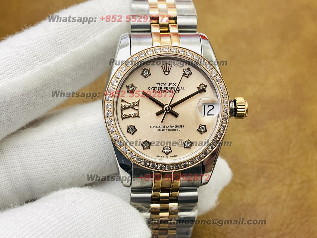 Datejust 278381 SS/RG Automatic Womens Watch Super Clone VRF 31 Diamond Bezel Gold Dial Jubilee Bracelet Ladies A2671