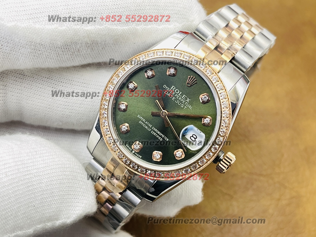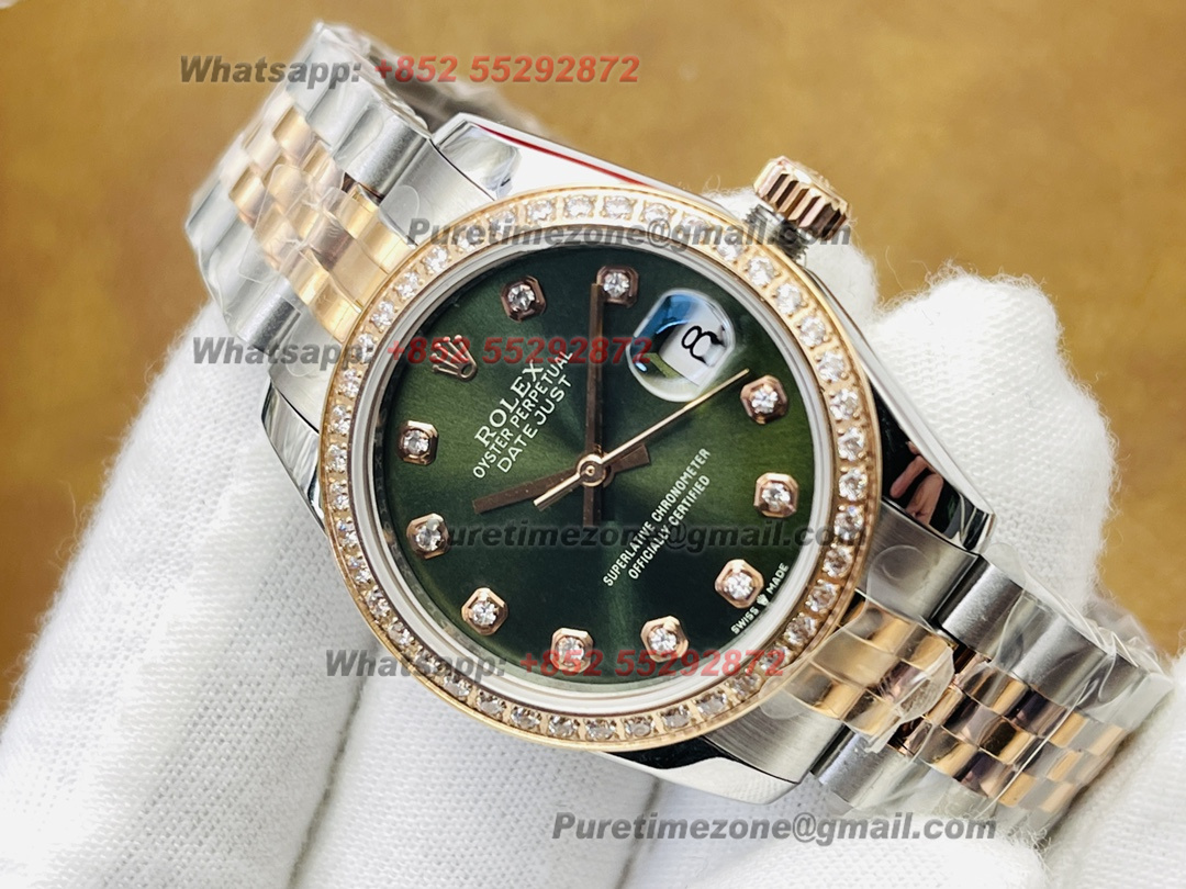 Datejust 278381 SS/RG Automatic Womens Watch Super Clone VRF 31 Diamond Bezel Green Dial Jubilee Bracelet Ladies A2671