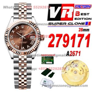 Datejust 279171 SS/RG Automatic Womens Watch Super Clone VRF 28 Brown Roman VI Dial President Bracelet Ladies A2671