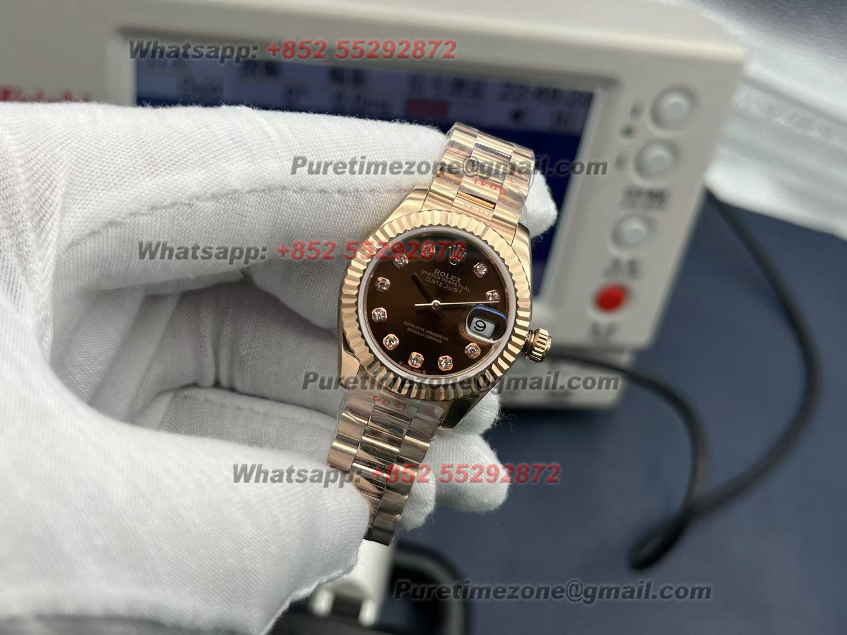 Datejust 279175 RG Automatic Womens Watch Super Clone VRF 28 Brown Diamond Dial President Bracelet Ladies A2671