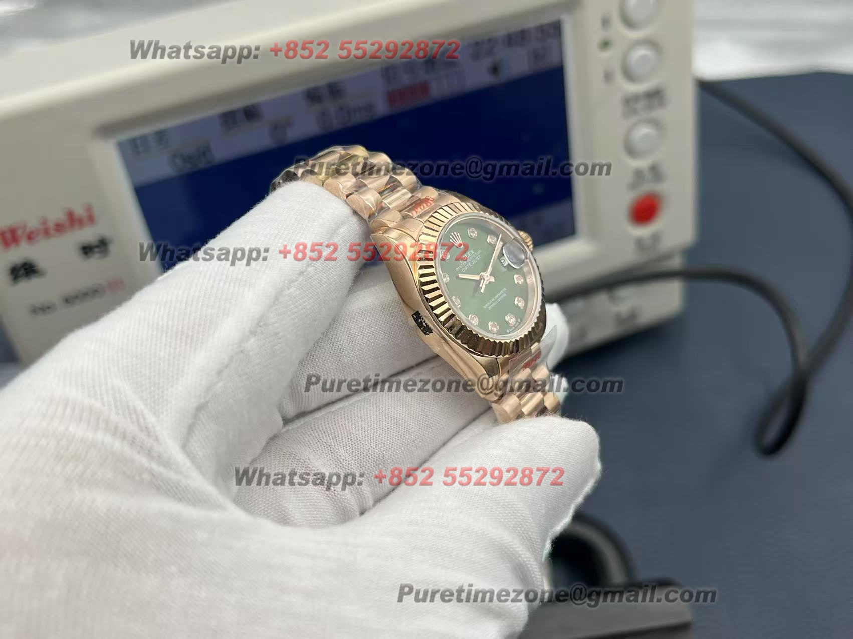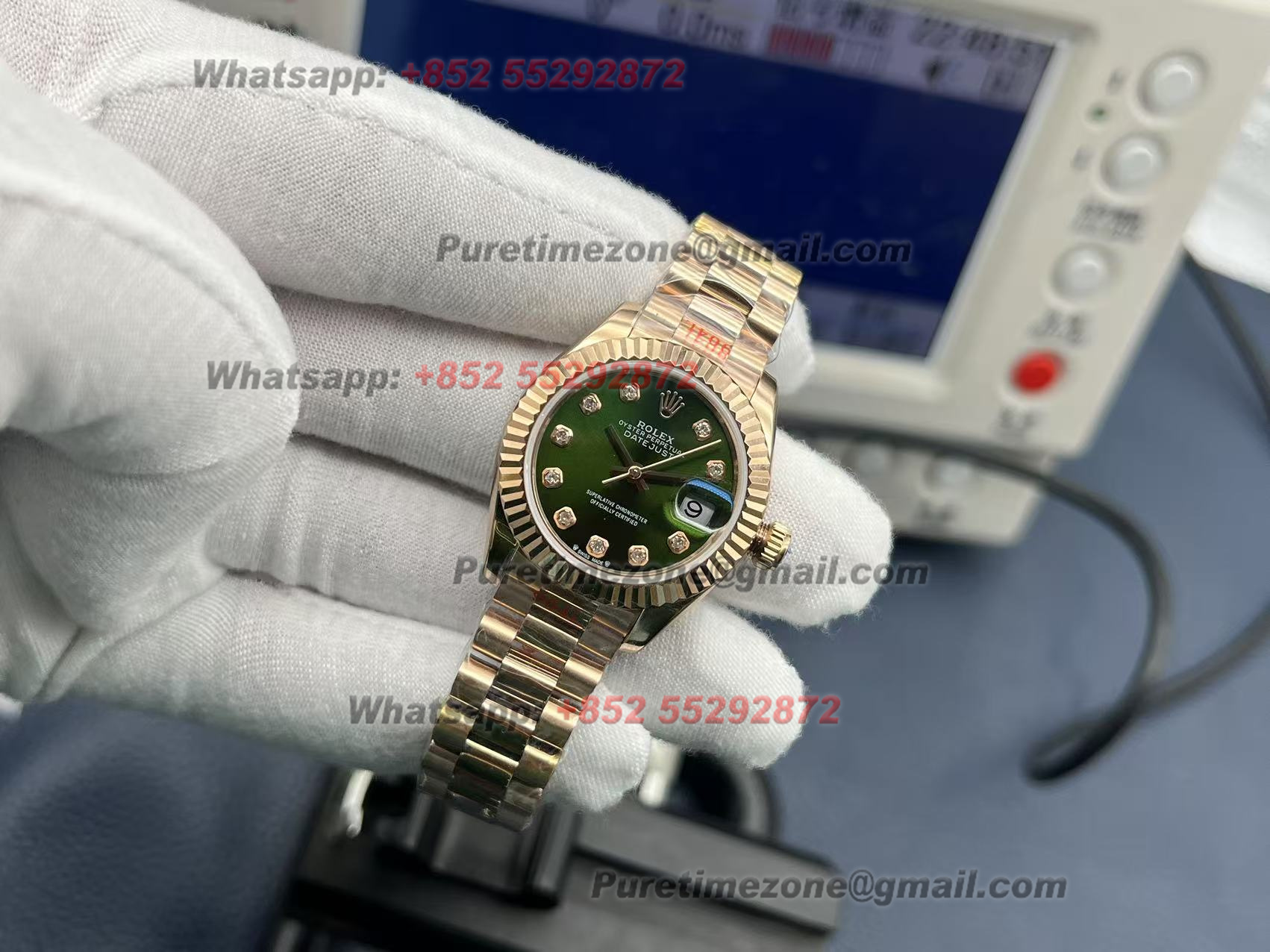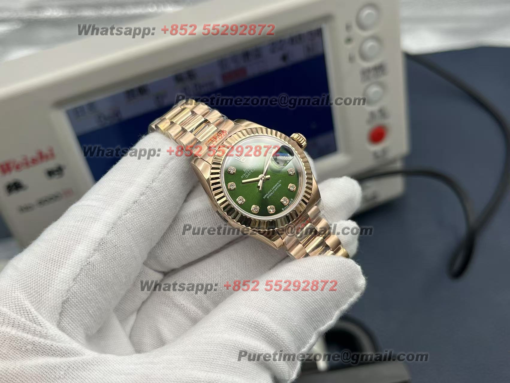 Datejust 279175 RG Automatic Womens Watch Super Clone VRF 28 Green Diamond Dial President Bracelet Ladies A2671
