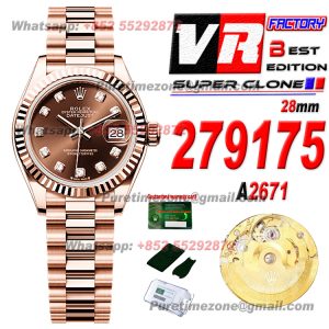 Datejust 279175 RG Automatic Womens Watch Super Clone VRF 28 Green Diamond Dial President Bracelet Ladies A2671