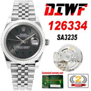 Datejust 41 126334 A3235 Automatic Mens Watch Best Edition DIWF Gray Green Arabic Script Dial 904L Jubilee SS Bracelet
