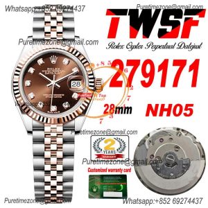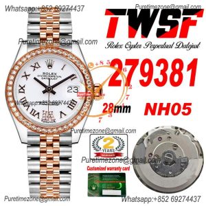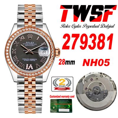 Datejust 28 279381 NH05 Auto Womens Watch Best Edition TWS Two Tone RG Diamonds Bezel Gray Roman Dial Jibilee Bracelet