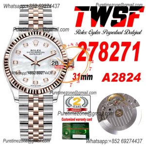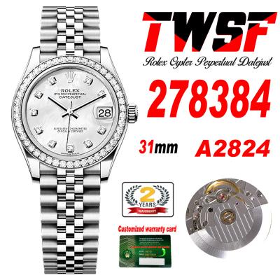 Datejust 31 278384 A2824 Auto Womens Watch Best Edition TWSF Diamonds Bezel MOP Dial Jibilee Bracelet Ladies