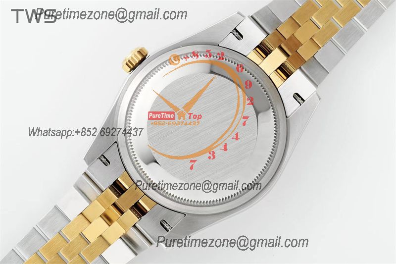 Movement:Base Movement: Asian 23J automatic movement; Decoration: Platinum plated movement plate and rotor which are made according to the genuine movement, decorated to Rolex Cal.3255 movement.