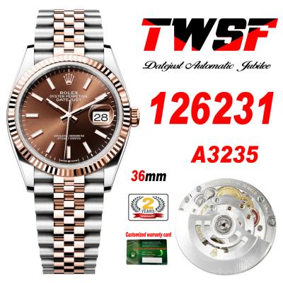 Home Rolex Datejust Datejust 36 126231 A3235 Automatic Mens Watch Best Edition TWSF Two Tone RG Brown Stick Dial Jibilee Bracelet CHS