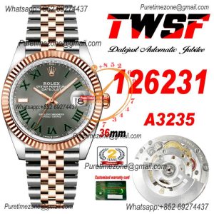 Datejust 36 126231 A3235 Auto Mens Watch Best Edition TWSF Two Tone RG Slate Grey Wimbledon Roman Dial Jibilee Bracelet $564.00 $470.00