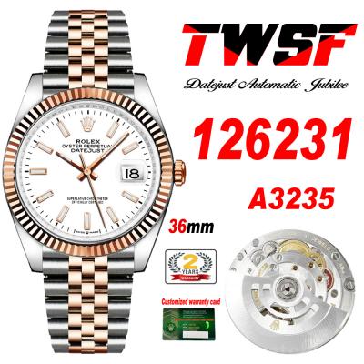 Datejust 36 126231 A3235 Automatic Mens Watch Best Edition TWSF Two Tone RG Whtie Stick Dial Jibilee Bracelet CHS