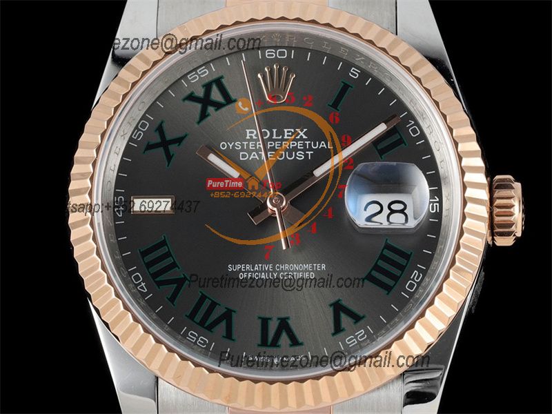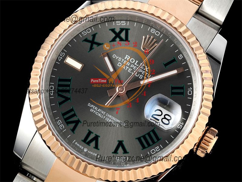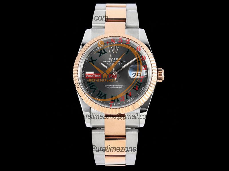 Datejust 36 126231 Wimbledon SA3235 Automatic Mens Watch Best Edition DIWF SS/RG Gray Roman Dial 904L Oyster Bracelet
