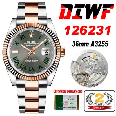 Datejust 36 126231 Wimbledon SA3235 Automatic Mens Watch Best Edition DIWF SS/RG Gray Roman Dial 904L Oyster Bracelet