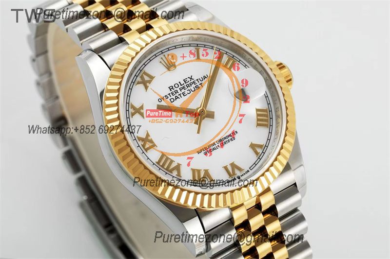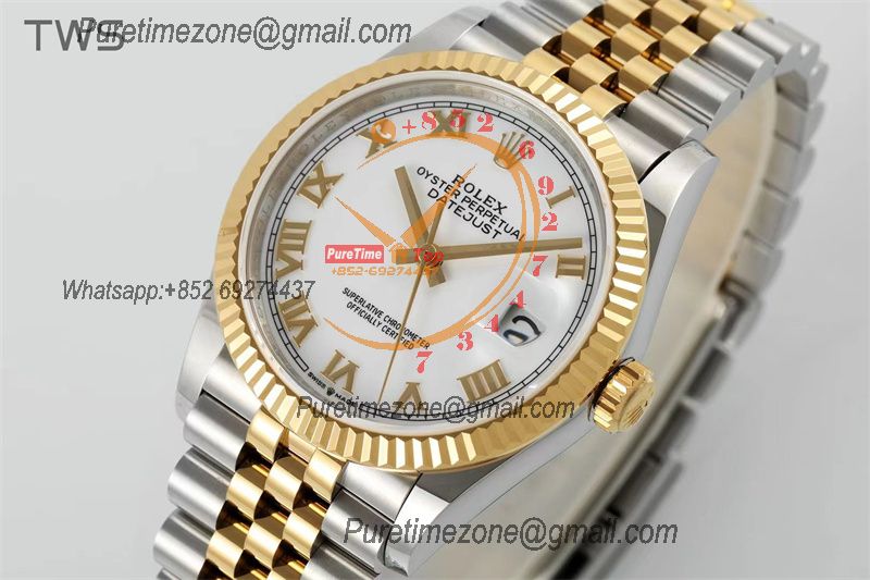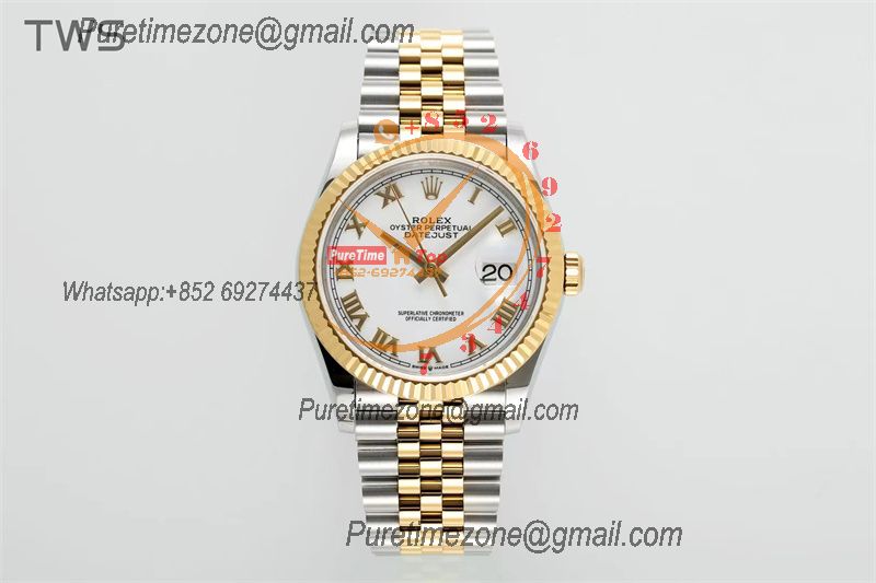 Home Rolex Datejust Datejust 36 126233 A3235 Automatic Mens Watch Best Edition TWSF Two Tone YG White Roman Dial Jibilee Bracelet CHS