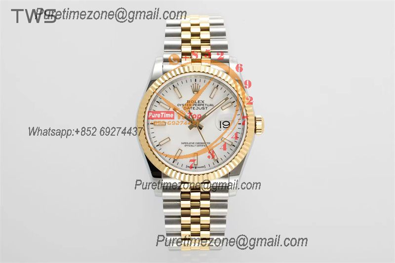 Home Rolex Datejust Datejust 36 126233 A3235 Automatic Mens Watch Best Edition TWSF Two Tone YG White Stick Dial Jibilee Bracelet CHS