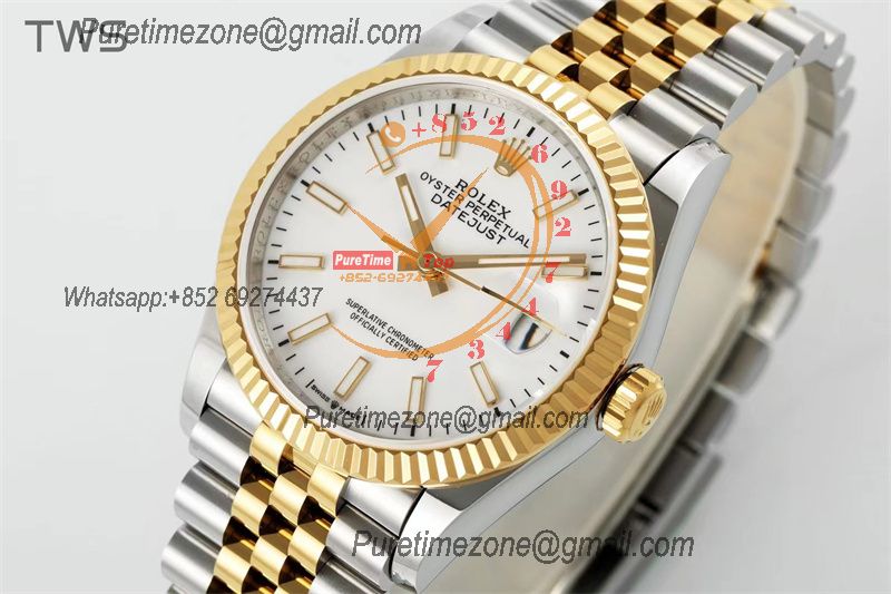 EWF Datejust 41 126331 A3235 Automatic Mens Watch Tow Tone YG White Stick Dial SS Jubilee Bracelet Best Edition