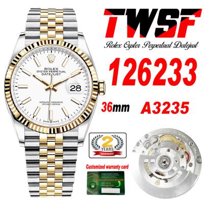 Home Rolex Datejust Datejust 36 126233 A3235 Automatic Mens Watch Best Edition TWSF Two Tone YG White Stick Dial Jibilee Bracelet CHS