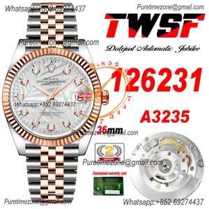 Datejust 36 126231 A3235 Auto Mens Watch Best Edition TWSF Two Tone RG Silver Palm Motif Diamond Dial Jibilee Bracelet $564.00 $470.00