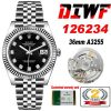 Datejust 36 126234 VR3235 Automatic Unisex Watch Best Edition JDF Black Diamonds Dial 904L Steel Jubilee Bracelet