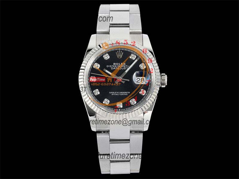 Datejust 36 126234 SA3235 Automatic Mens Watch Best Edition DIWF Black Diamonds Dial 904L Oyster Steel Bracelet