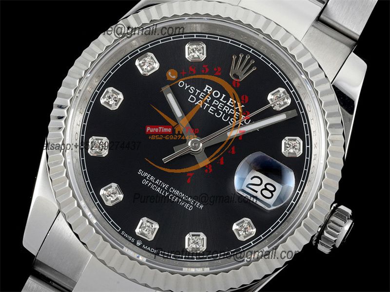 Home Rolex Datejust Datejust 36 126234 SA3235 Automatic Mens Watch Best Edition DIWF Black Diamonds Dial 904L Oyster Steel Bracelet