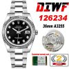 Datejust 36 126234 SA3235 Automatic Mens Watch Best Edition DIWF Black Diamonds Dial 904L Oyster Steel Bracelet