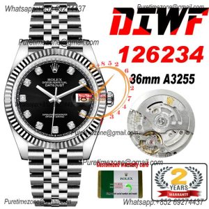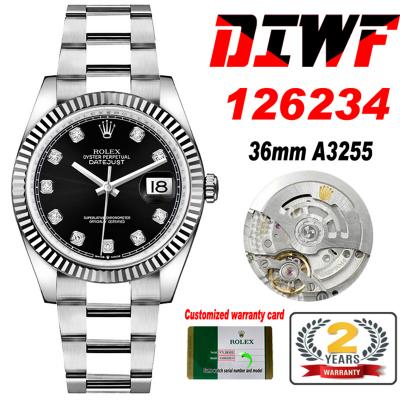Home Rolex Datejust Datejust 36 126234 SA3235 Automatic Mens Watch Best Edition DIWF Black Diamonds Dial 904L Oyster Steel Bracelet