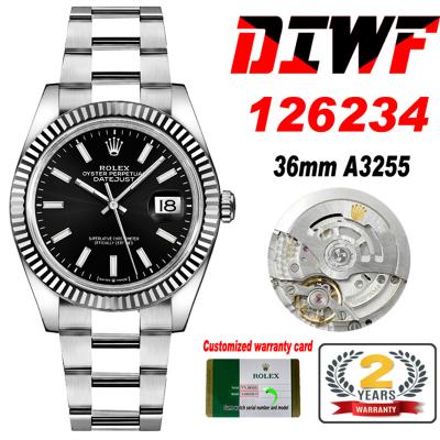Home Rolex Datejust Datejust 36 126234 SA3235 Automatic Mens Watch Best Edition DIWF Black Stick Dial 904L Oyster Steel Bracelet