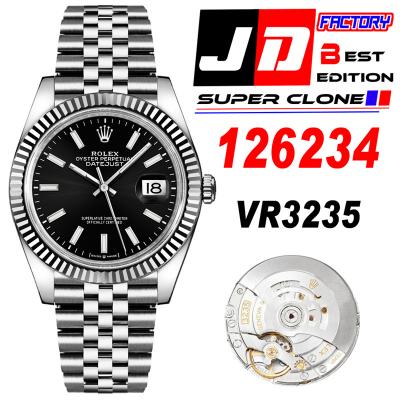 Datejust 36 126234 VR3235 Automatic Unisex Watch Best Edition JDF Black Stick Dial 904L Steel Jubilee Bracelet