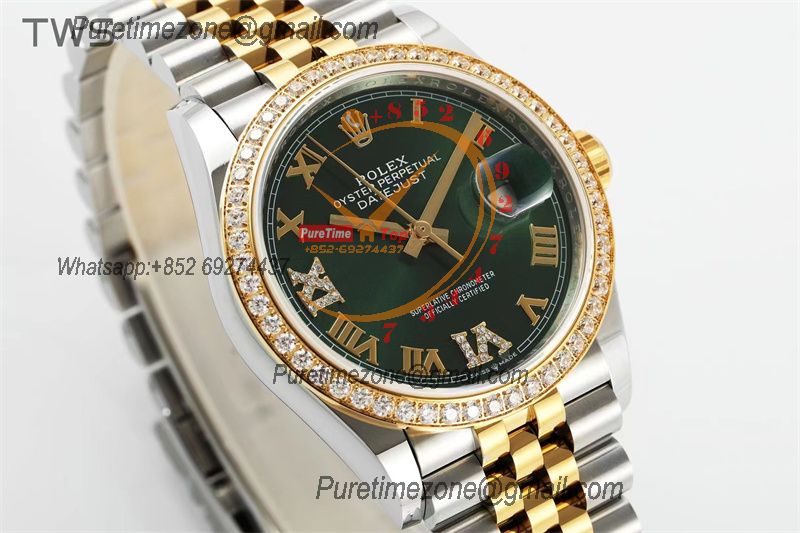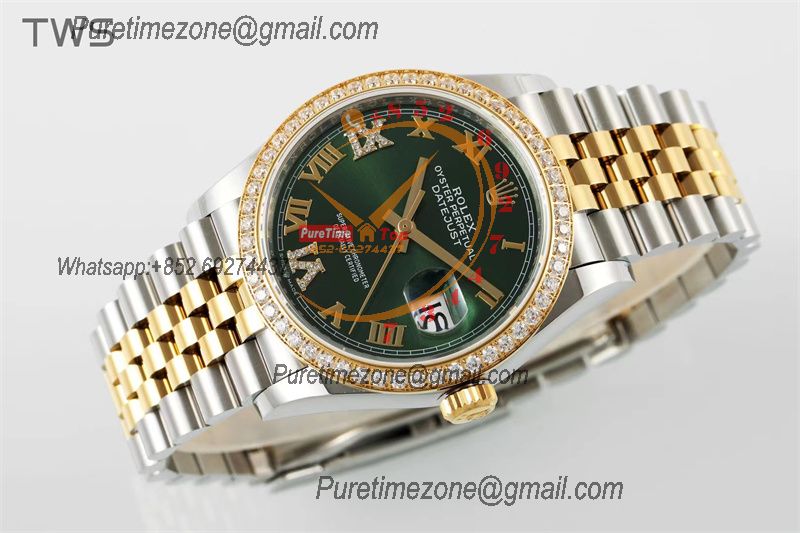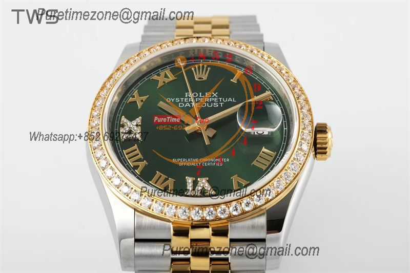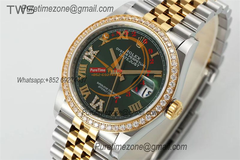 Home Rolex Datejust Datejust 36 126283 A3235 Auto Mens Watch Best Edition TWSF Two Tone YG Green Roman Diamonds Dial Jibilee Bracelet CHS