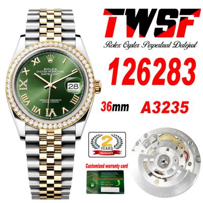 Datejust 36 126283 A3235 Auto Mens Watch Best Edition TWSF Two Tone YG Green Roman Diamonds Dial Jibilee Bracelet CHS