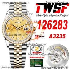 Datejust 36 126283 A3235 Auto Mens Watch Best Edition TWSF Two Tone YG Golden Logo Diamonds Dial Jibilee Bracelet CHS $564.00 $470.00