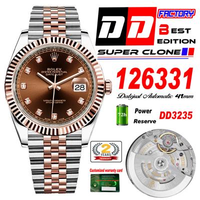 Datejust 41 126331 DD3235 Automatic Mens Watch Best Edition DDF SS/RG Brown Diamonds Dial 904L SS Jubilee Bracelet