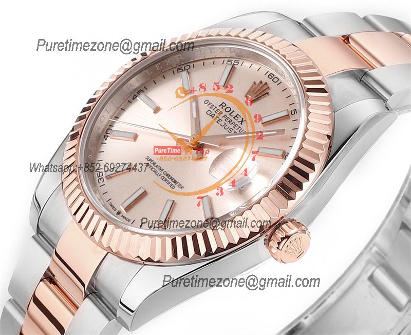 Case:18k rose gold /yellow gold plated/1:1 high quality 904L stainless steel, screw-in back and crown, deep and double line engraved rehaut, brighter and more accurate engravings, random serial number engraved at 6:00 of the rehaut. Different random serials