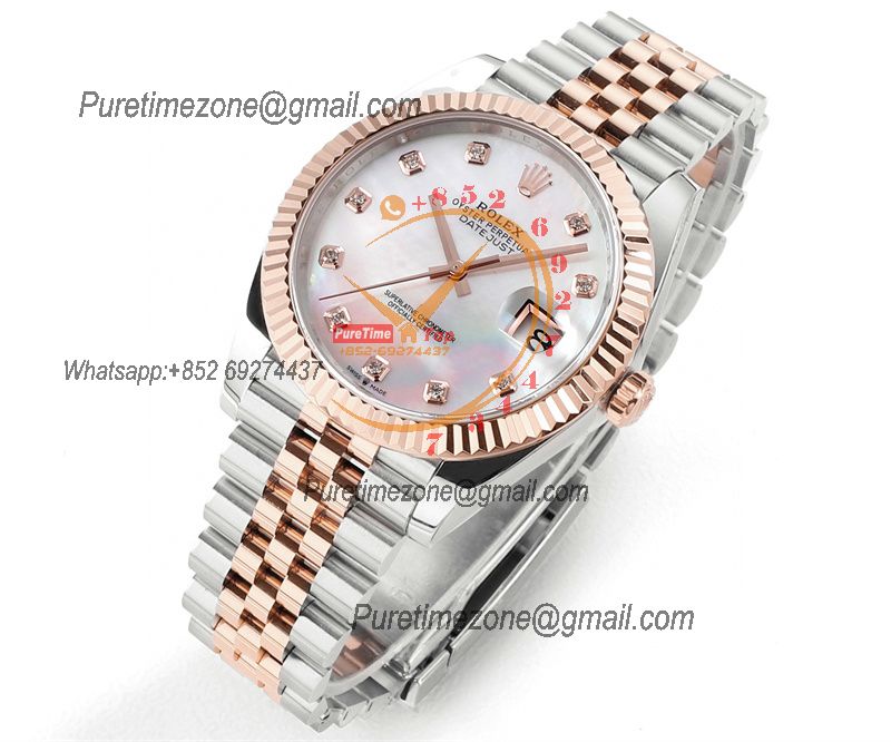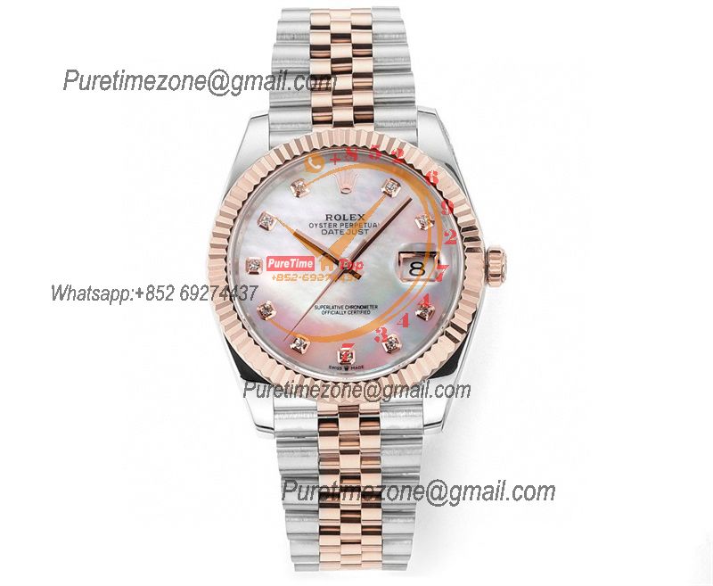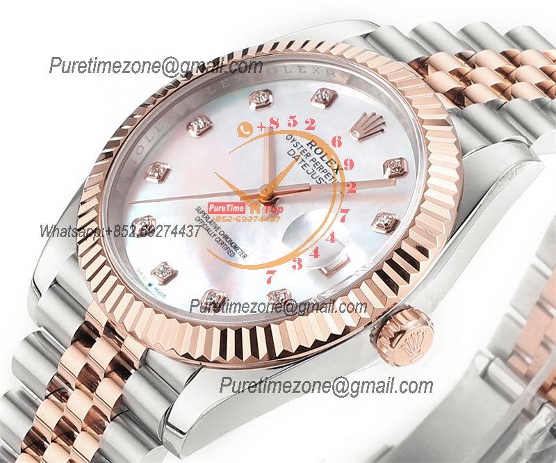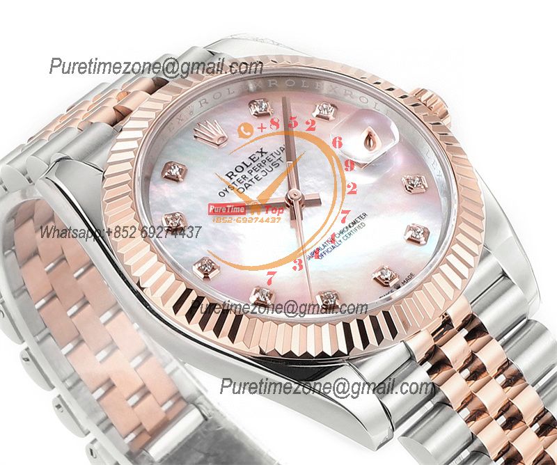 EWF Datejust 41 126331 A3235 Automatic Mens Watch Tow Tone RG MOP Diamonds Dial SS Jubilee Bracelet Best Edition