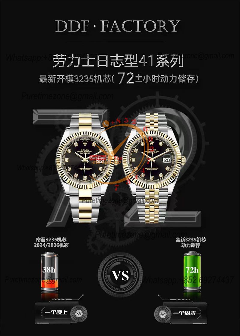 Datejust 41 126333 DD3235 Automatic Mens Watch Best Edition DDF SS/YG Black Diamonds Dial 904L SS Jubilee Bracelet