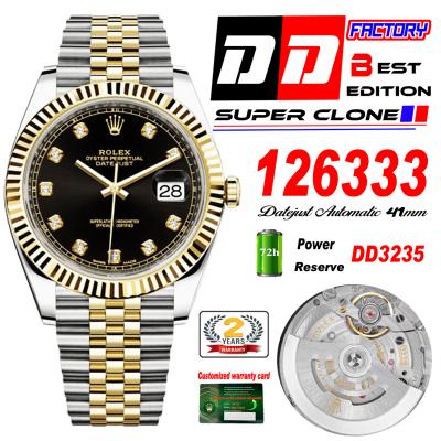 Datejust 41 126333 DD3235 Automatic Mens Watch Best Edition DDF SS/YG Black Diamonds Dial 904L SS Jubilee Bracelet