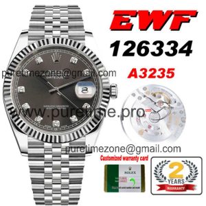 EWF Datejust 41 126334 A3235 Automatic Mens Watch Gray Diamonds Dial SS Jubilee Bracelet Best Edition