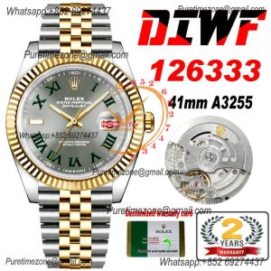 Datejust 41 126333 Wimbledon SA3235 Automatic Mens Watch Best Edition DIWF SS/YG Gray Roman Dial 904L Oyster Bracelet