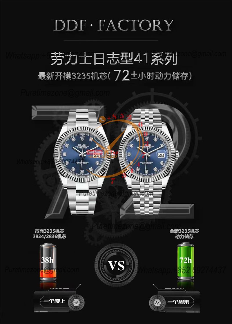 Datejust 41 126334 DD3235 Automatic Mens Watch Best Edition DDF Blue Diamonds Dial 904L SS Jubilee Bracelet