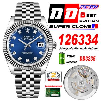 Datejust 41 126334 DD3235 Automatic Mens Watch Best Edition DDF Blue Diamonds Dial 904L SS Jubilee Bracelet