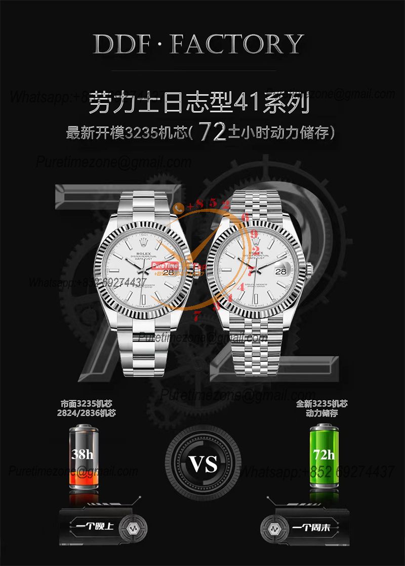 Case:1:1 high quality 904L stainless steel, screw-in back and crown, deep and double line engraved rehaut, brighter and more accurate engravings, random serial number engraved at 6:00 of the rehaut. Different random serials