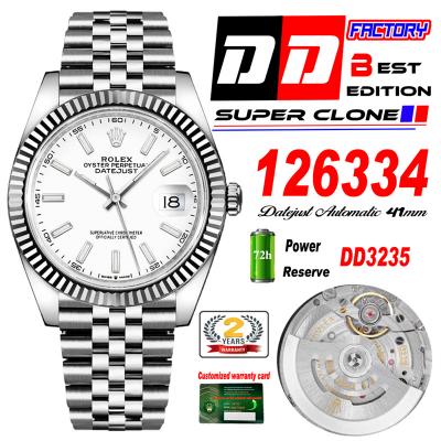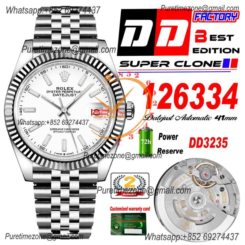 Datejust 41 126334 DD3235 Automatic Mens Watch Best Edition DDF White Stick Dial 904L SS Jubilee Bracelet