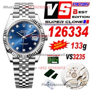 Be the first to review “DateJust 41 126334 VS3235 Automatic Mens Watch 904L SS VSF V2 1:1 Best Edition Blue Stick Dial Jubilee Bracelet (133g)” Cancel reply
