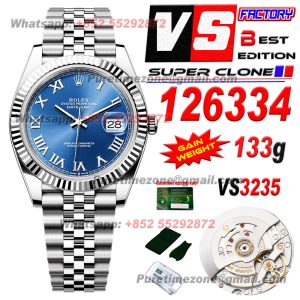 DateJust 41 126334 VS3235 Automatic Mens Watch 904L SS VSF V2 1:1 Best Edition Blue Roman Dial Jubilee Bracelet (133g) $850.00