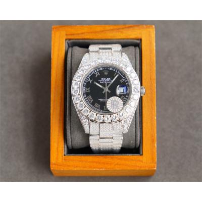Datejust A2824 Automatic Mens Watch 41 Best Edition RRF Black Roman Paved Diamonds Fully Iced Out 904L Steel Bracelet