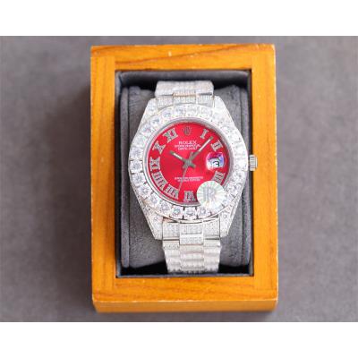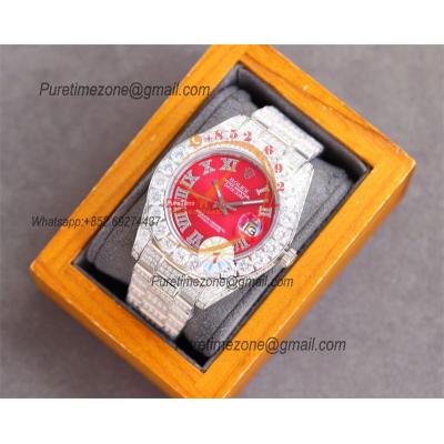 Datejust A2836 Automatic Mens Watch 41 Best Edition RRF Red Arabic Paved Diamond Fully Iced Out 904L Steel Bracelet