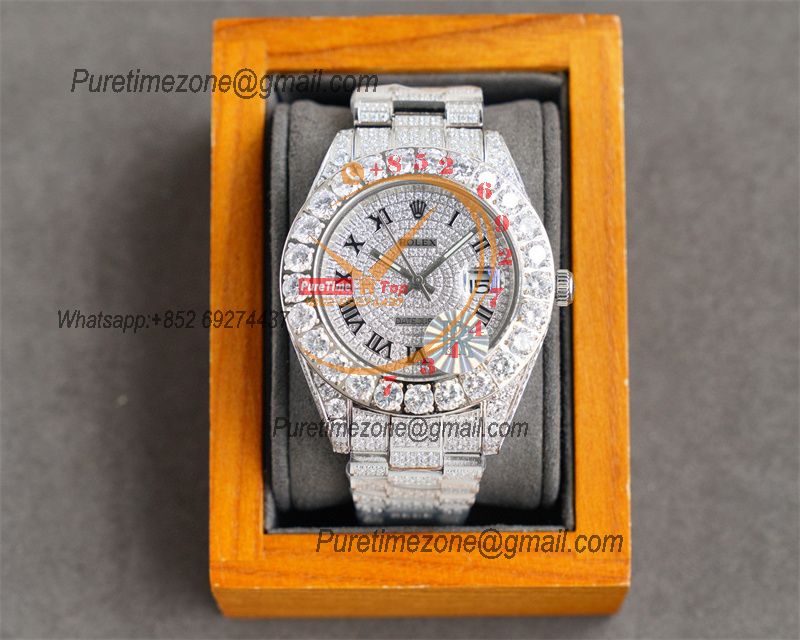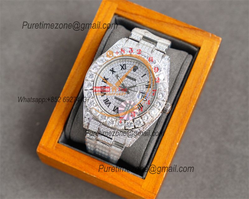 Datejust A2824 Automatic Mens Watch 41 Best Edition RRF Gray Roman Paved Diamonds Fully Iced Out 904L Steel Bracelet