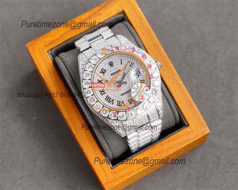 Datejust A2836 Automatic Mens Watch 41 Best Edition RRF Red Arabic Paved Diamond Fully Iced Out 904L Steel Bracelet