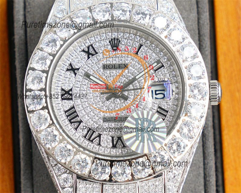 Datejust A2824 Automatic Mens Watch 41 Best Edition RRF Black Roman Paved Diamonds Fully Iced Out 904L Steel Bracelet